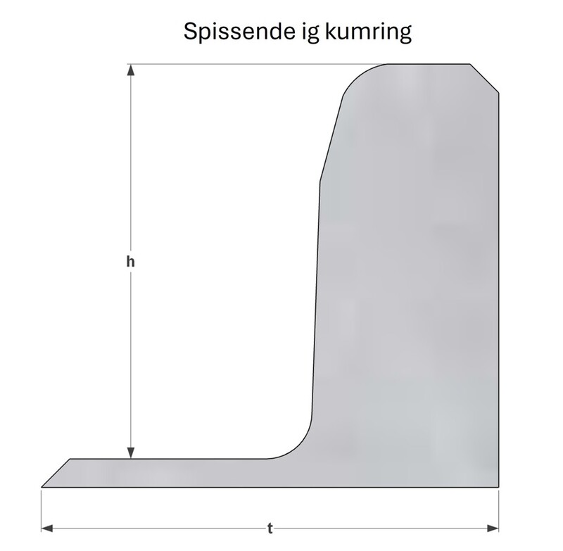 Høyden h på spissende ig-kumring er følgende:
