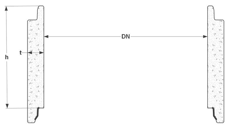 | Varenummer | DN (mm) | Høyde H (mm) | Vekt (Kg) | Tykkelse t (mm) | Pris eks. mva |