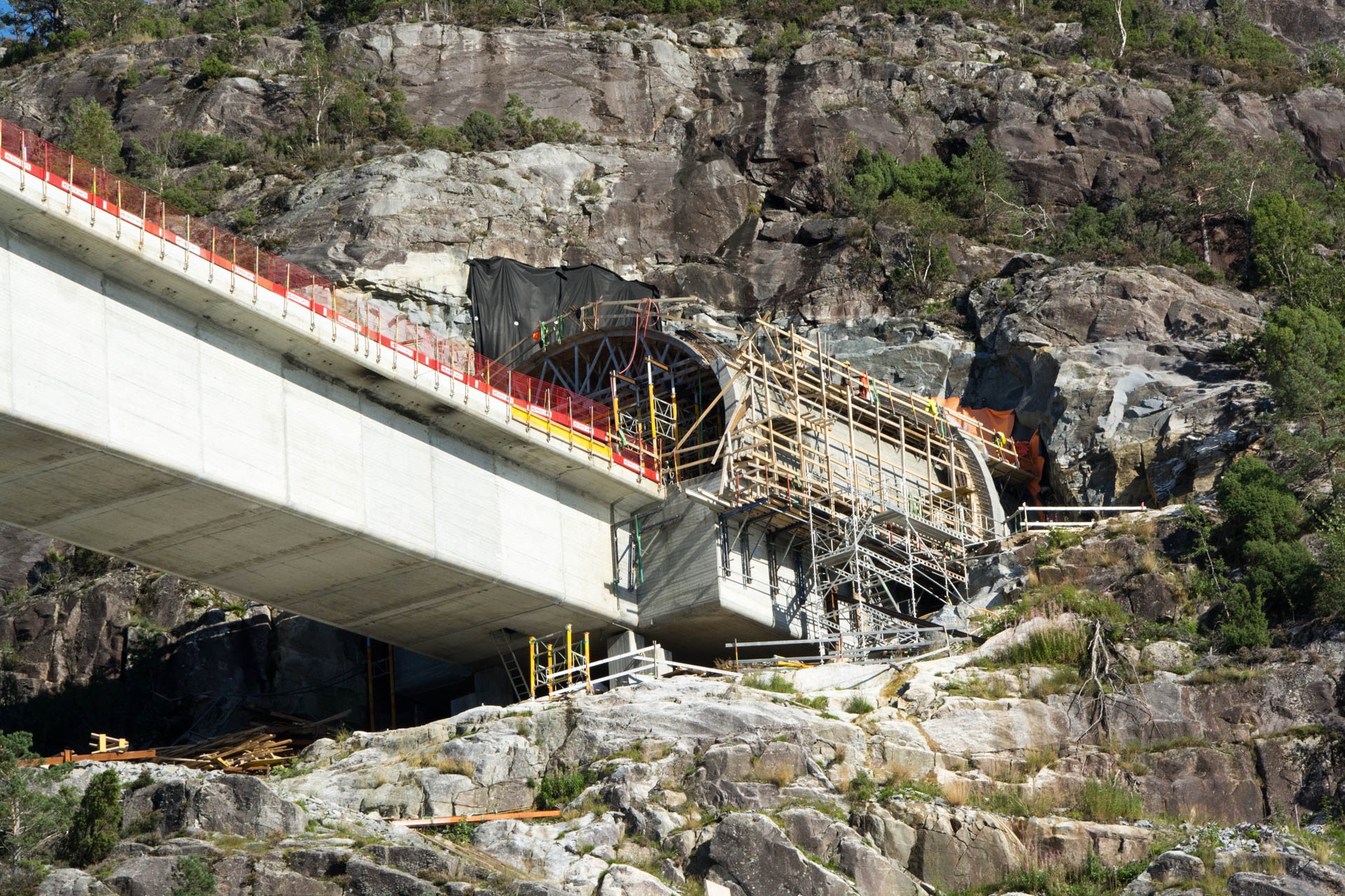 - Å bygge brua har vært en komplisert prosess. Det ligger mye arbeid og kunnskap i bunn, og så må man ha is i magen underveis. Både tårnene og bruspennet har flyttet på seg i alle retninger underveis. Det er blitt justert på forskjellige måter. Da det korteste bruspennet nådde tunnelsiden, måtte det jekkes ned 27 centimeter. Og da forskalingsvogna ble fjernet etter sammenstøypingen, lettet brua 20 centimeter på bruenden. Før sammenstøypingen i hovedspennet måtte tårnene også jekkes seks centimeter fra hverandre, forteller prosjektleder Tor Arne Thorsen i Statens vegvesen.