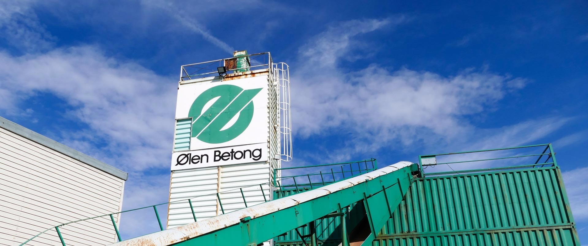 Ølen Betong sin logo på det gamle blandeverket på Susort