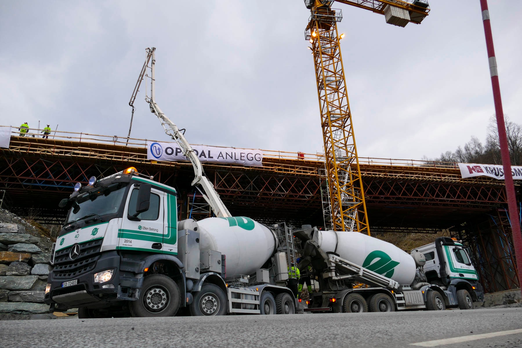 På dagtid kjørte 13 betongbiler i skytteltrafikk de ca 30 kilometerne mellom Ølensvåg og Hålandsbrua i Etne. På nattestid var mellom 8 og 11 betongbiler i drift.