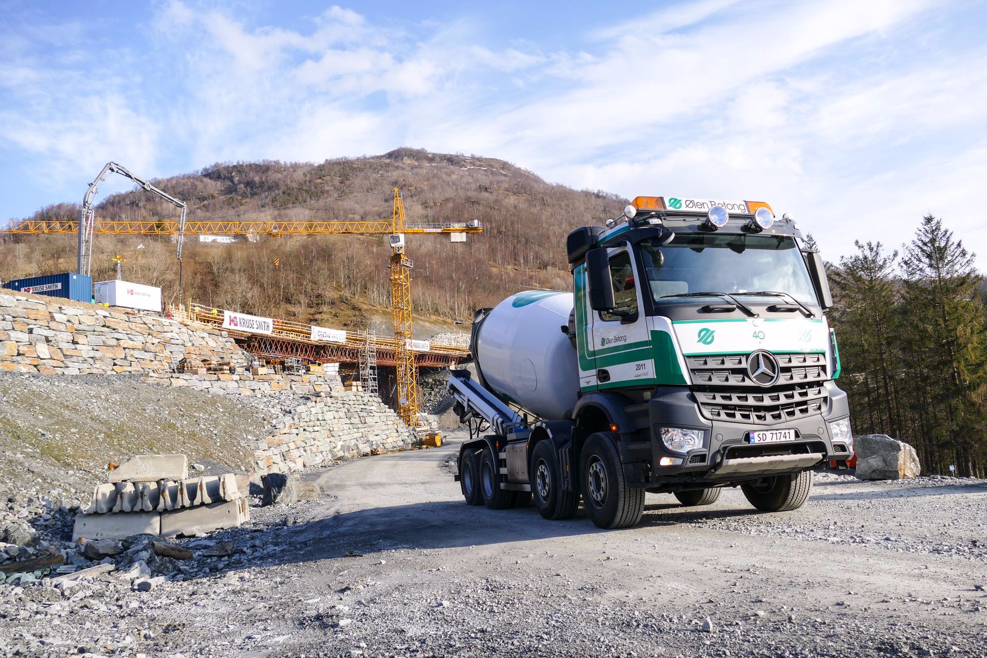 Totalt vil det bli levert ca 10.000 m3 betong til Kruse Smith for vegprosjektet langs E 134 i Stordalen. Ølen Betong har også stått for leveranse av sprøytebetong og tunnelelementer til de tre tunnelene som del av veiprosjektet. Til sammen 4100 kvadratmeter elementer er levert fra Ølen Betong til tunnelene.